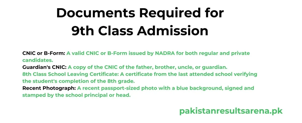 - 8th Class School Leaving Certificate: A certificate from the last attended school verifying the student’s completion of the 8th grade.