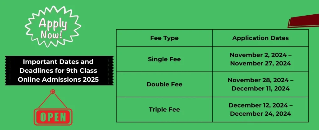 Important Dates and Deadlines for 9th Class Online Admissions 2025