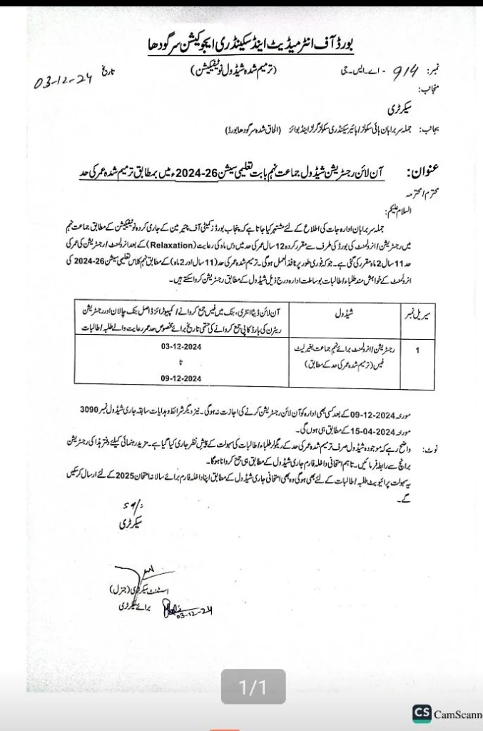 The Board of Intermediate and Secondary Education Sargodha has issued a detailed notification regarding the re-registration process for students who wish to continue or renew their registration for the academic session 2024-2026. Below, we have simplified the rules, deadlines, and fee structure to make it easier for students to understand.