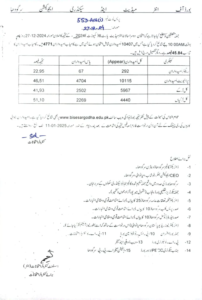 After completing the evaluation process, the Sargodha Board officially announced the 2nd annual exam results for intermediate part 2 students. The board has published them online to make it easier for students to access their results. This step saves time and provides convenience, allowing students to view their marks and overall performance status from anywhere.